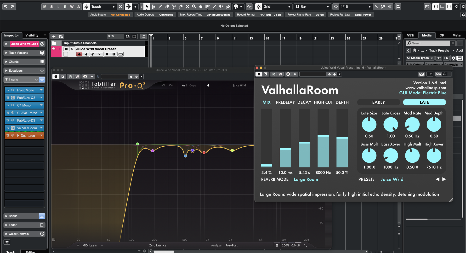 RVOX, C4 Compressor (Waves), CLA Vocals (Waves), FabFilter Pro-Q 3, FabFilter Pro-DS, ValhallaRoom, H-Delay