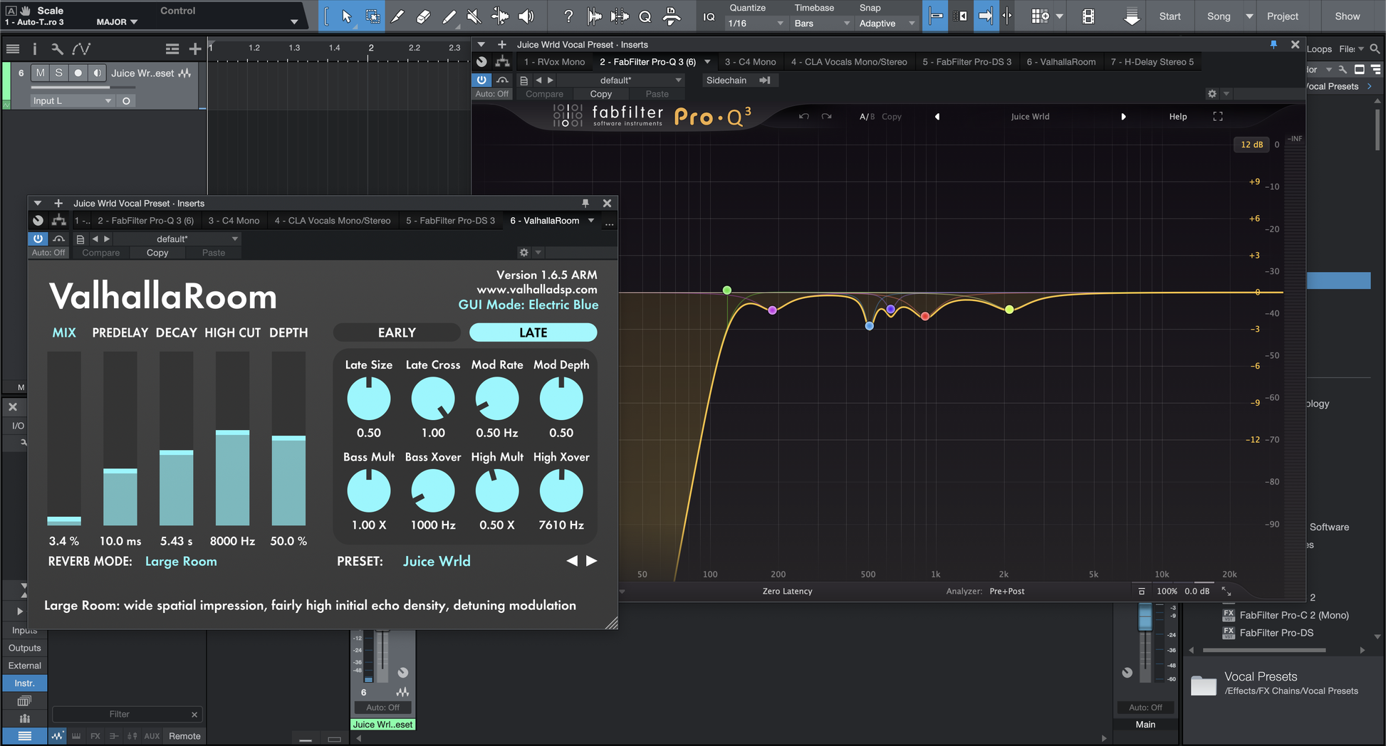 RVOX, C4 Compressor (Waves), CLA Vocals (Waves), FabFilter Pro-Q 3, FabFilter Pro-DS, ValhallaRoom, H-Delay