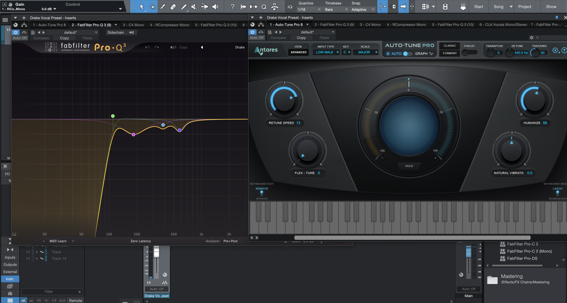 Auto-Tune、EQ、コンプレッション、ディレイ、リバーブを備えた完全なボーカルチェーン