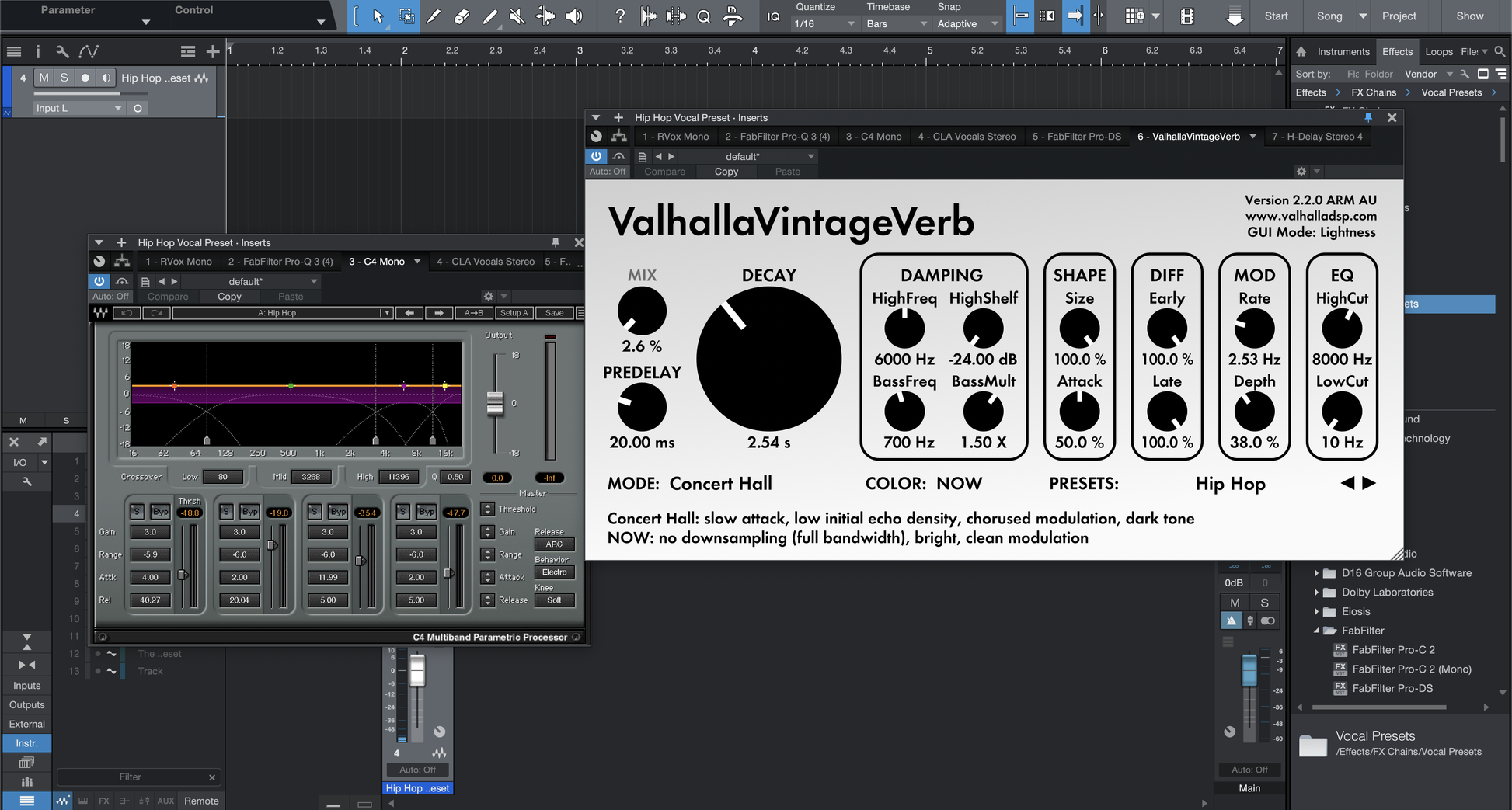 RVOX、C4 Compressor (Waves)、CLA Vocals (Waves)、FabFilter Pro-Q 3、FabFilter Pro-DS、Valhalla VintageVerb、H-Delay