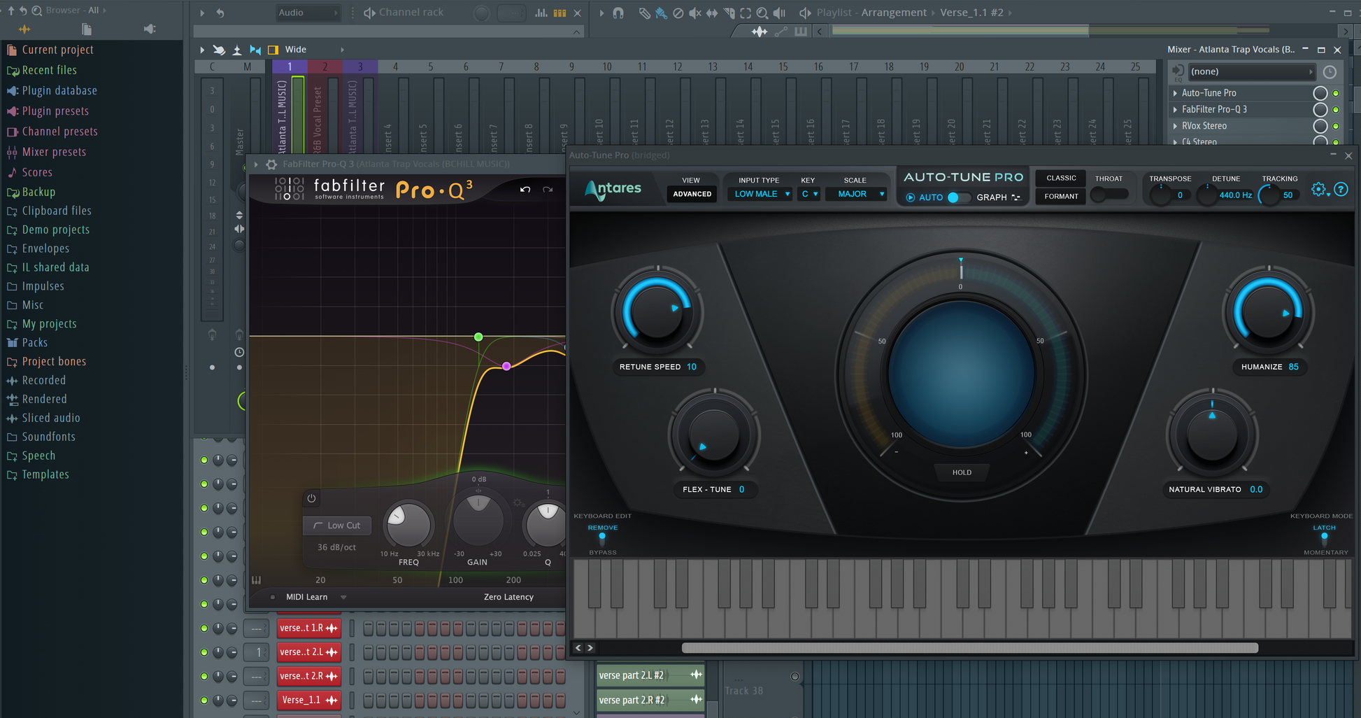 Auto-Tune Pro, C4 Compressor (Waves), CLA Vocals, FabFilter Pro-Q 3, FabFilter Pro-DS, RVOX, RVerb, H-Delay
