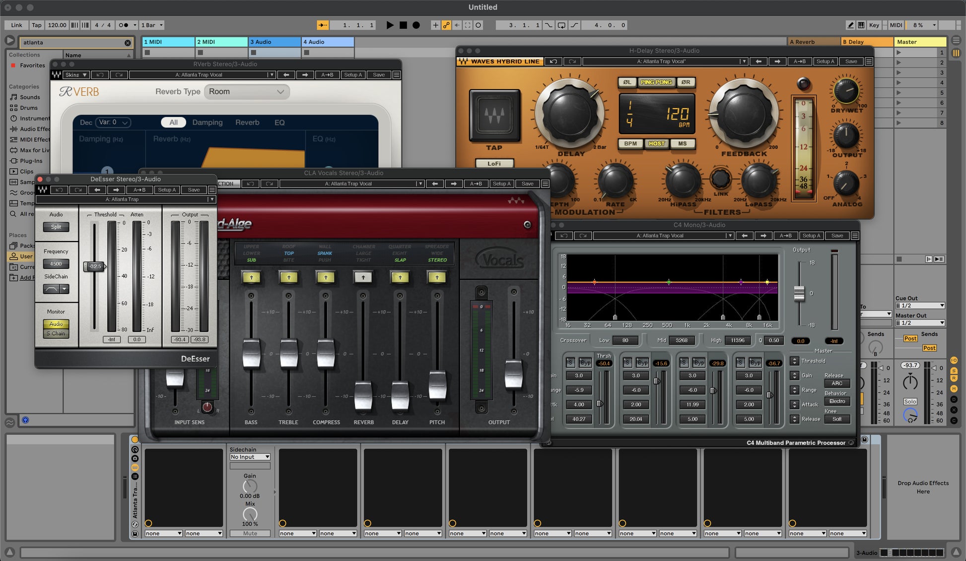Auto-Tune Pro, C4 Compressor, CLA Vocals, FabFilter Pro-Q 3, FabFilter Pro-DS, RVOX, RVerb, H-Delay